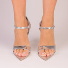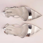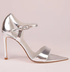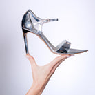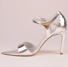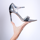 Luna Silver is a high-heel sandal designed to reflect light and elegance in every step. Handmade in Italy, it features mirror-effect silver laminated nappa leather, including a 90/95 mm covered heel that creates a seamless, sculptural silhouette.