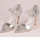 • Edge & Toe Detail: Silver laminated kid leather