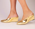 SOLARIS WEDGE – Golden Mirror Leather Mule
